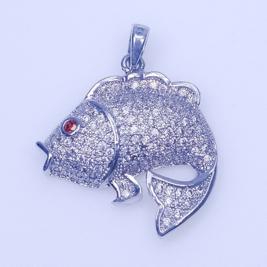 925 Sterling Silver CZ "Good Luck"Fish Pendant