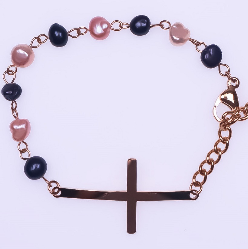 925 Sterling Silver Rose Gold Plated CZ Antique Cross Bracelet
