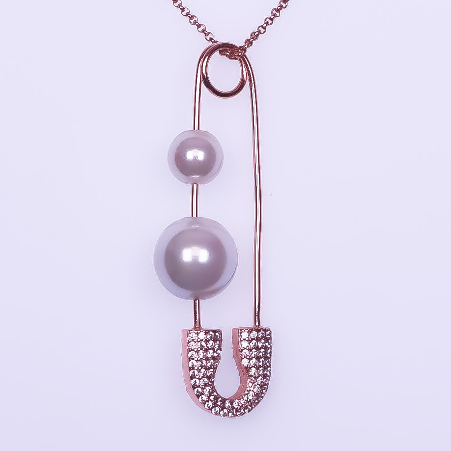 925 Sterling Silver Rose Gold Plated CZ Glass Pearl Pendant