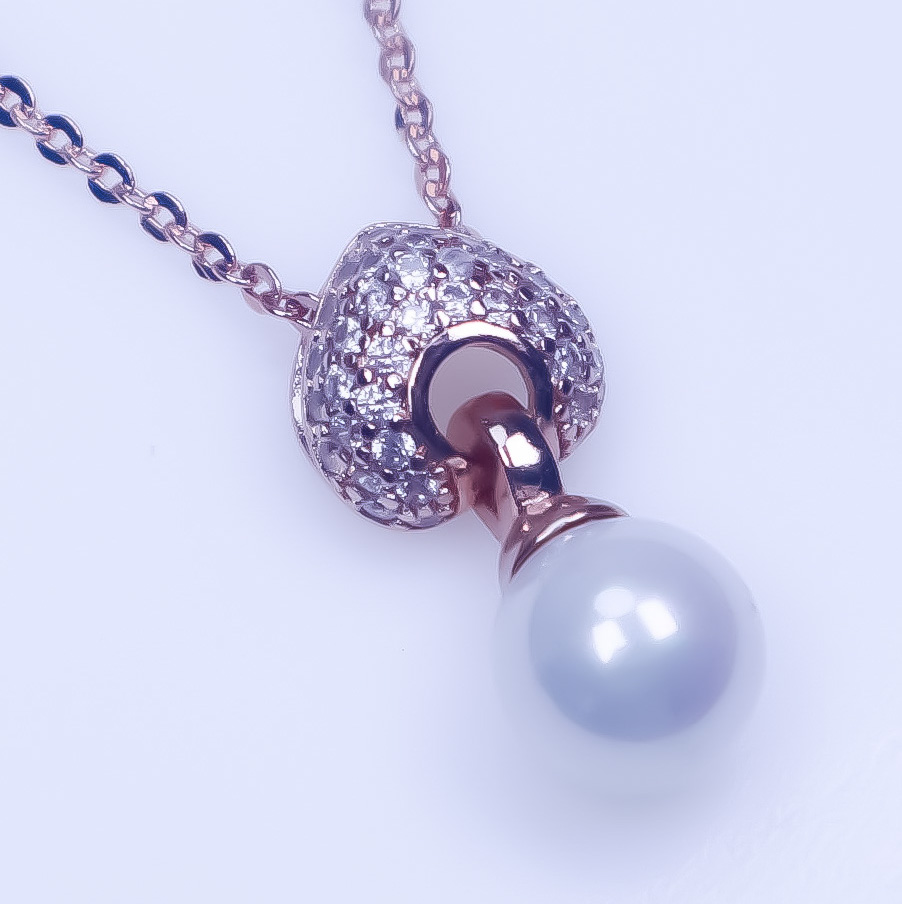 Brass Rose Gold Plated CZ Glass Pearl Pendant