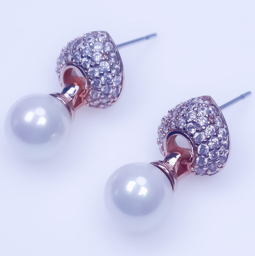 Brass Rose Gold Plated CZ Glass Pearl Earrings