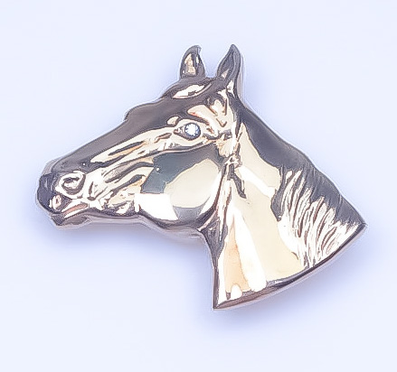 Men's Brass 14K Gold Plated CZ Horse Head Button Cover