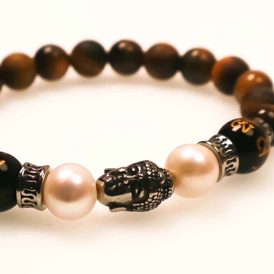 Gemstone FWP Buddha Stainless Steel Stretch Bracelet Set